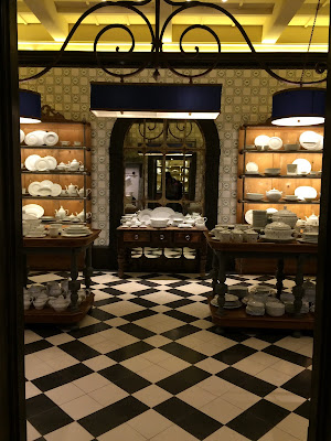 Apenas accedì al local, quedè fascinada! Una atmòsfera teatral y escenogràfica impregnaba los distintos salones y sus diferentes ambientaciones. Amè èsta propuesta de jardines de invierno, con todo el despliegue de la vajilla y sus piezas, en color blanco!