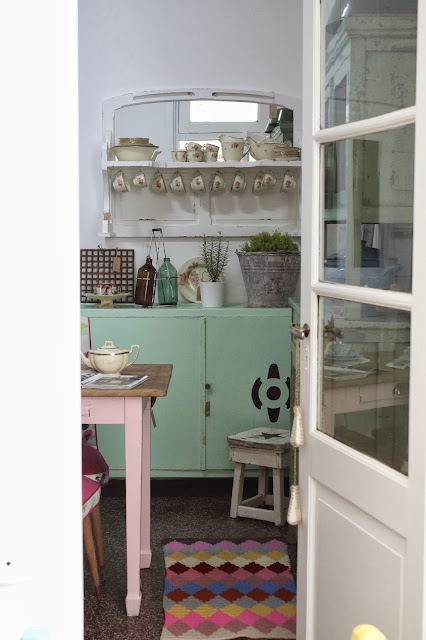perfecta,la mesita de campo,todo lo que hat sobre el mueble,esas botellas viejas,LAS TAZAS POR DIOS!!son lo mas en febrero voy a visitarte prometido algo me tengo que traer,quiero servilletitas antiguas Marce ojala todavia tengas o puedas consegir. Es un placer ver cada cosa,cada detalle!{